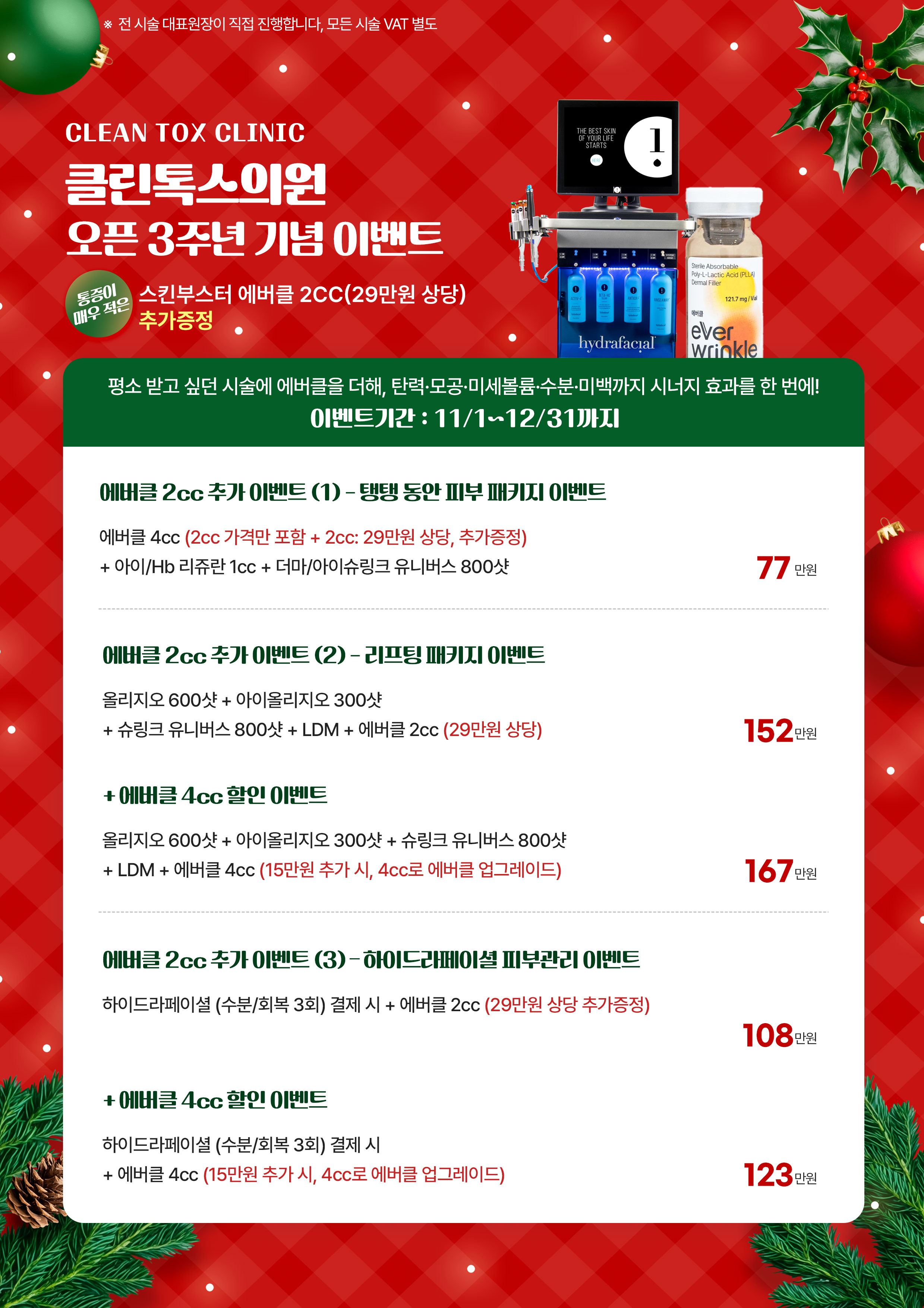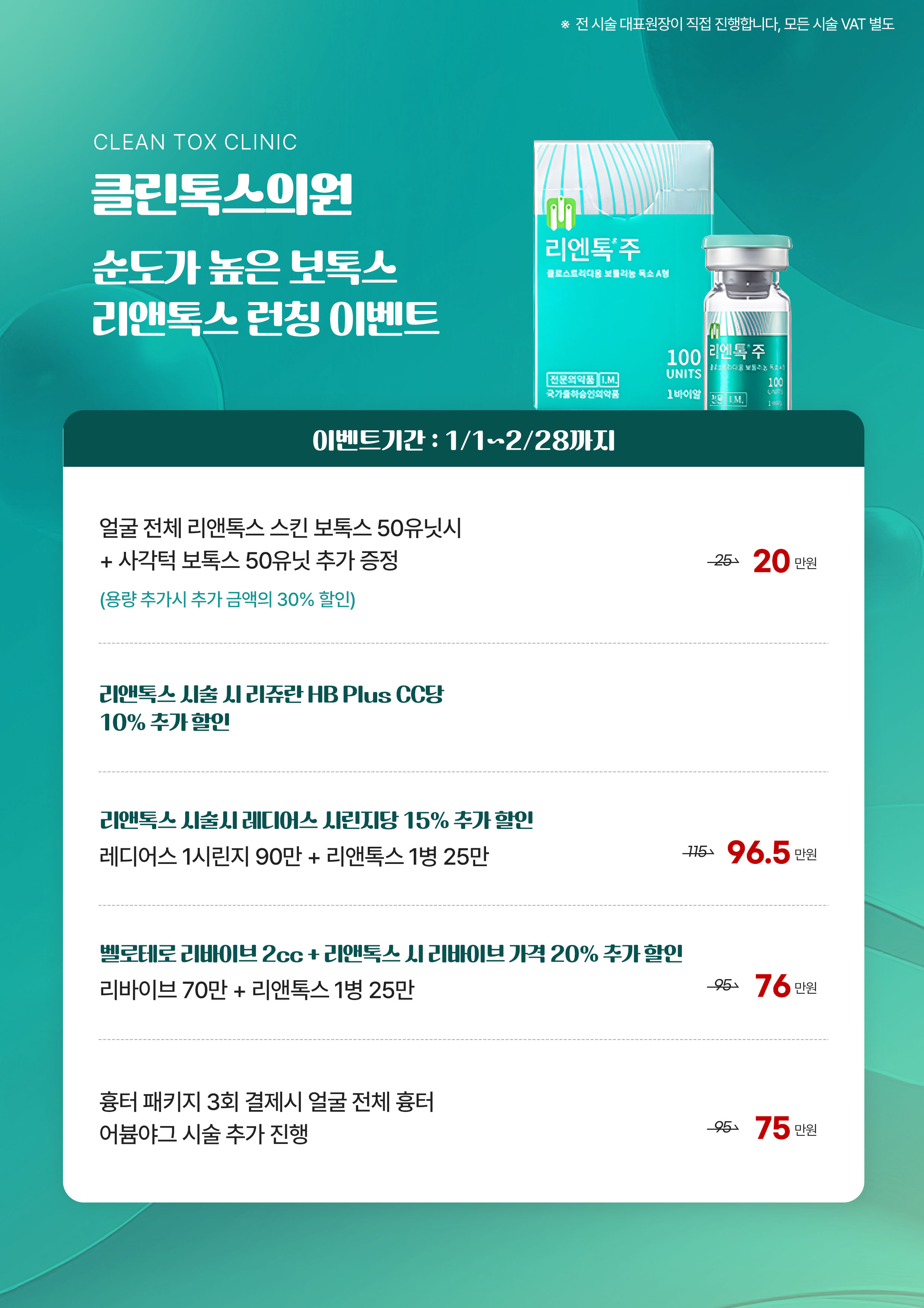 잔주름&탄력 자연스럽게 개선 얼굴 전체 스킨보톡스 VIEW MORE 통증 걱정 없이 물광&피부재생 얼굴 전체 리쥬란 hb plus VIEW MORE 슈링크X인모드 콜라보로 더 강력하게 디자인 리프팅 슈모드 VIEW MORE